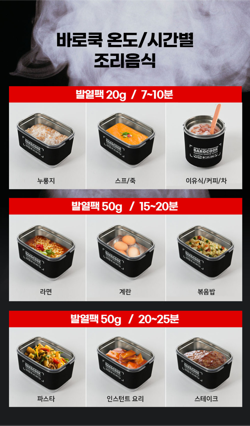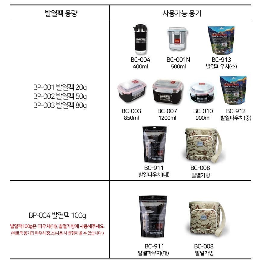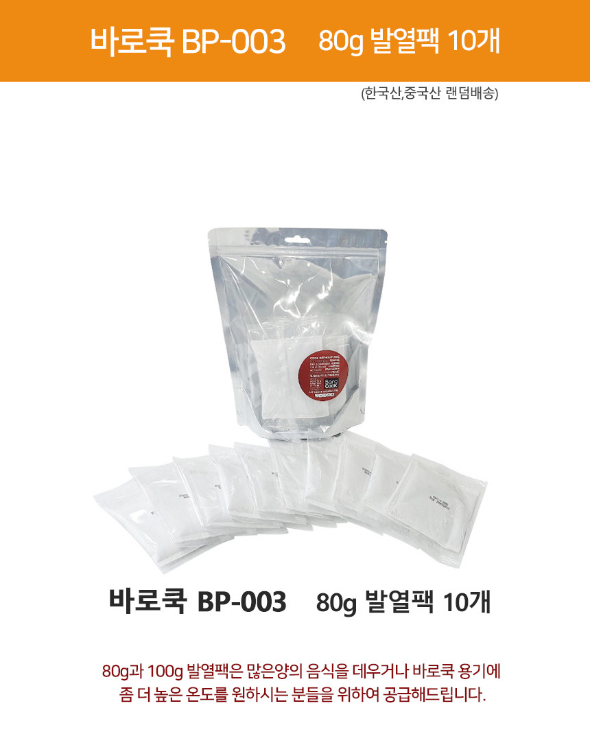 바로쿡 발열용기와 발열 파우치에는 바로쿡 전용 발열팩을 사용해주세요